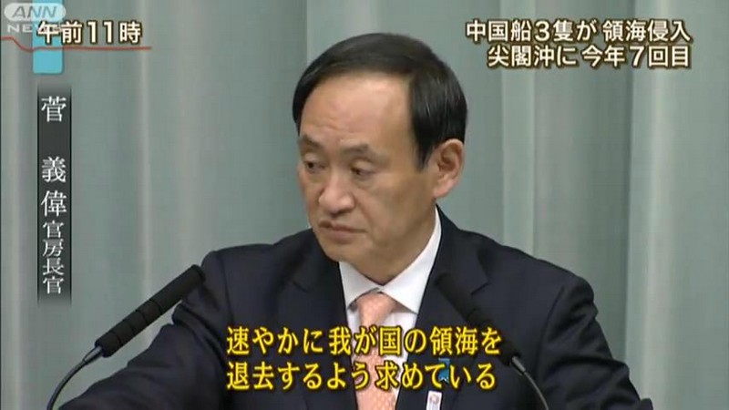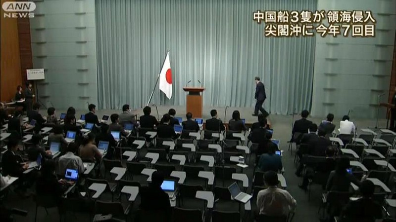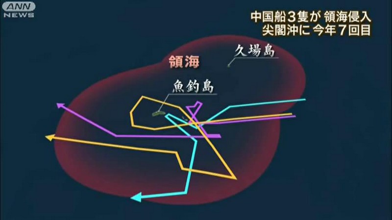 報道稱(chēng), 18日上午8時(shí)54分至9時(shí)17分,中國3艘海監船相繼進(jìn)入釣魚(yú)島附近的“日本領(lǐng)!,日本海上保安廳巡邏船立即發(fā)出警告。中國“海監50”則通過(guò)無(wú)線(xiàn)電用中文和英語(yǔ)回答稱(chēng),釣魚(yú)島及其附屬島嶼是中國領(lǐng)土。共同社稱(chēng),3艘中國船環(huán)繞釣魚(yú)島航行約5小時(shí),“海監50”最近時(shí)僅距島約1公里。