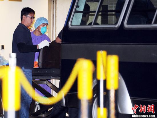 在埃及熱氣球事故中遇難的九名港人遺體,3月11日傍晚運返香港,再由靈車(chē)轉送葵涌公眾殮房。中新社發(fā) 譚達明 攝
