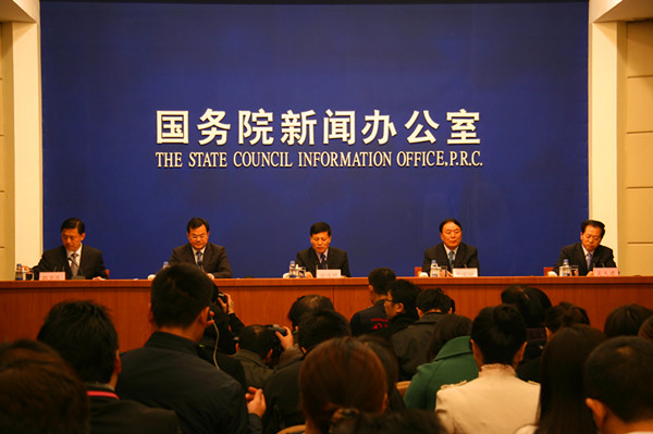 2013年4月3日,國務(wù)院新聞辦公室舉行新聞發(fā)布會(huì ),河南省人民政府省長(cháng)謝伏瞻、中國民航局局長(cháng)李家祥、國家發(fā)改委地區經(jīng)濟司司長(cháng)范恒山、河南省委常委、鄭州市委書(shū)記吳天君介紹河南省經(jīng)濟社會(huì )發(fā)展情況及鄭州航空港經(jīng)濟綜合實(shí)驗區發(fā)展規劃等方面情況,并答記者問(wèn)。中國經(jīng)濟網(wǎng)網(wǎng) 王飛 攝