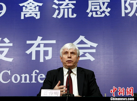 圖為世界衛生組織駐華代表藍睿明在新聞發(fā)布會(huì )上!z影:李慧思