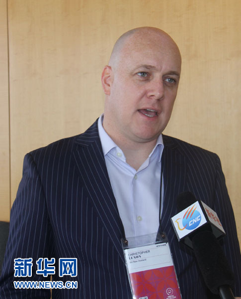 圖為新西蘭航空全球首席執行官陸杰鋒 (Air New Zealand CEO Christopher Luxon)23日在奧克蘭接受新華網(wǎng)記者專(zhuān)訪(fǎng)。