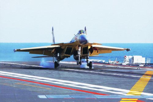 中國“遼寧艦”航母艦載航空兵的主力是殲-15殲擊機!赌先A早報》2012年11月24日披露稱(chēng),殲-15已經(jīng)由試飛員戴明盟駕駛在航母甲板上順利著(zhù)陸,從而標志著(zhù)中國正式成為擁有噴氣式艦載殲擊機的新興海軍大國。 俄媒稱(chēng),殲-15的研制歷史值得關(guān)注。上世紀90年代末,中國試圖從俄羅斯采購50架蘇-33艦載殲擊機。但是在就可能的合同進(jìn)行談判期間,中方希望購買(mǎi)的飛機數量持續減少,最終減至2架。不難猜測,兩架殲擊機根本無(wú)法配備一艘航母,只可能會(huì )被中國用來(lái)仿制,隨后生產(chǎn)類(lèi)似的國產(chǎn)艦載機。雖然俄羅斯航空制造業(yè)當時(shí)的經(jīng)濟狀況較為嚴峻,急需新合同,最終還是拒絕了中國,沒(méi)有向中國出售一架蘇-33。不久以后中國就與烏克蘭就出售一架蘇-33的原型機T-10K以及某些相關(guān)文獻達成一致。2010年夏有報道稱(chēng),中國自主研制的殲-15艦載殲擊機成功首飛。