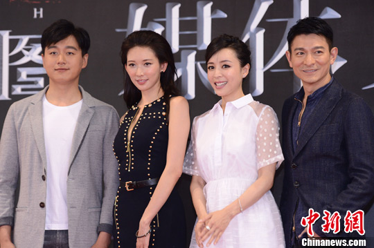6月2日,超感官迷情特工大片《天機·富春山居圖》在北京舉行了電影全球首映禮。圖為四大主演。中新社發(fā) 李學(xué)仕 攝