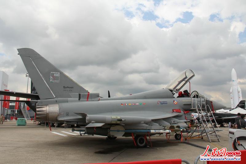 第50屆法國巴黎航展17日-23日在巴黎郊區的布爾歇機場(chǎng)開(kāi)幕,眾多國際知名的新型軍民用飛機匯聚巴黎。圖為歐洲“臺風(fēng)”戰斗機靜態(tài)展示。(李志偉 攝影)