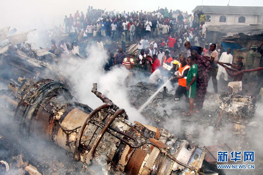 當日,尼日利亞一架客機在拉各斯機場(chǎng)附近墜毀,機上153人全部遇難,空難還造成地面至少40人死亡。新華社發(fā)(通吉·奧巴薩攝)