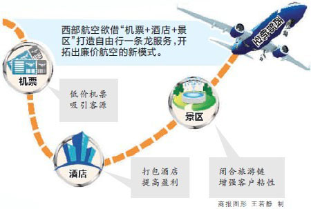 廉價(jià)航空如何構建自己的商業(yè)生態(tài)?這是宣布轉型低成本后的西部航空的一大難題。昨日,商報記者獲悉,為打開(kāi)局面,西部航空宣布拉長(cháng)產(chǎn)業(yè)鏈,進(jìn)軍旅游市場(chǎng),將重點(diǎn)打造“機票+酒店”的組合旅游模式,探路低成本航空運作商業(yè)生態(tài)鏈。這意味著(zhù)西部航空的盈利觸角,將延伸到下游的在線(xiàn)旅游市場(chǎng)。對此,在線(xiàn)旅游服務(wù)企業(yè)表示,歡迎航空公司打包產(chǎn)品通過(guò)他們來(lái)銷(xiāo)售,但航空公司若想壟斷資源來(lái)?yè)屖,恐不受歡迎。