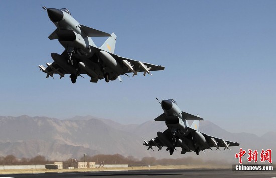 1月31日,雪域高原陽(yáng)光明媚,萬(wàn)里無(wú)云。駐藏空軍某軍用機場(chǎng)戰鷹列陣,車(chē)輛奔流,戰士們在緊張有序中拉開(kāi)龍年新春首飛的序幕。圖為10時(shí)30分戰鷹準時(shí)編隊起飛。中新社發(fā) 劉應華 攝 圖片來(lái)源:CNSPHOTO
