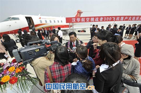 上圖為:漢華航空首架挑戰者300飛機落戶(hù)大連儀式現場(chǎng)