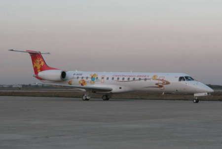 身著(zhù)卡通“貔貅”的ERJ145噴氣式客機