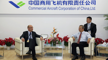 中國經(jīng)濟網(wǎng)訊 2012年11月14日中國商飛公司副總經(jīng)理吳光輝在第九屆珠海航展期間會(huì )見(jiàn)了國際航空界友人,雙方就互相關(guān)心的問(wèn)題深入交換了意見(jiàn)。