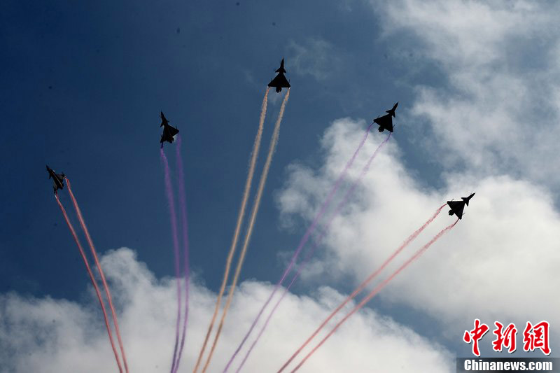 珠海航展八一表演隊上演編隊飛行練習