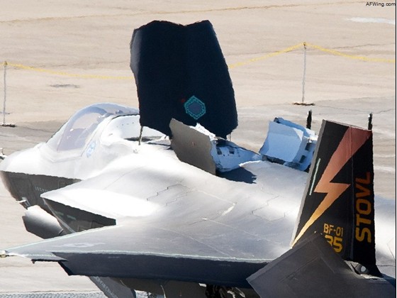 沃爾德倫指出,那么這架飛機到底是什么飛機?從照片上來(lái)看,這種機型有兩個(gè)發(fā)動(dòng)機。而且,進(jìn)氣口上方突出部分的設計令人起疑。這部分離駕駛艙太遠;蛟S那是一個(gè)與F-35B類(lèi)似的升力風(fēng)扇門(mén)。如果是那樣就太酷了。