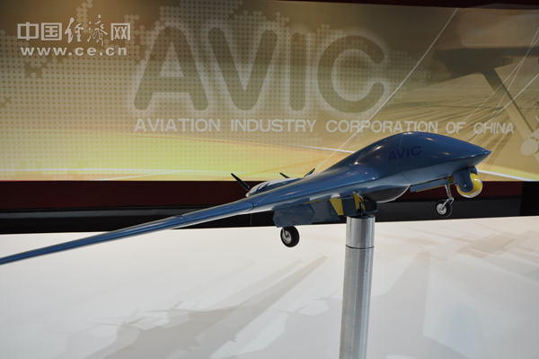 中航工業(yè)比例為1:6的鷂鷹Ⅲ無(wú)人機,該機型將亮相珠海航展。中國經(jīng)濟網(wǎng)記者 段丹峰 攝
