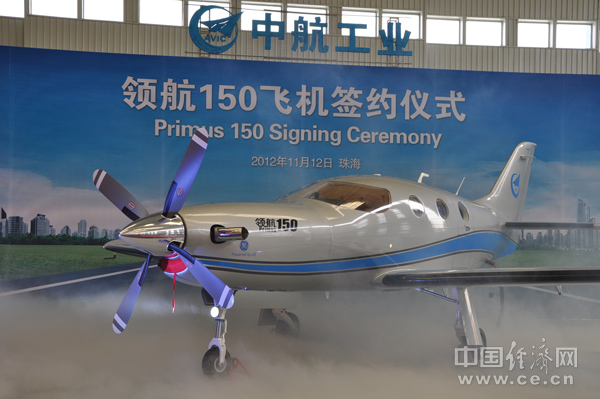 中國經(jīng)濟網(wǎng)珠海航展特派記者團記者段丹峰 劉瑾11月12日報道 12日下午,中航通用飛機有限責任公司在珠;嘏e行我國首款具有自主知識產(chǎn)權的全復合材料輕型公務(wù)機——領(lǐng)航150下線(xiàn)揭幕暨簽約儀式;并在儀式現場(chǎng)喜獲8架用戶(hù)訂單。