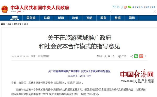 《關(guān)于在旅游領(lǐng)域推廣政府和社會(huì )資本合作模式的指導意見(jiàn)》