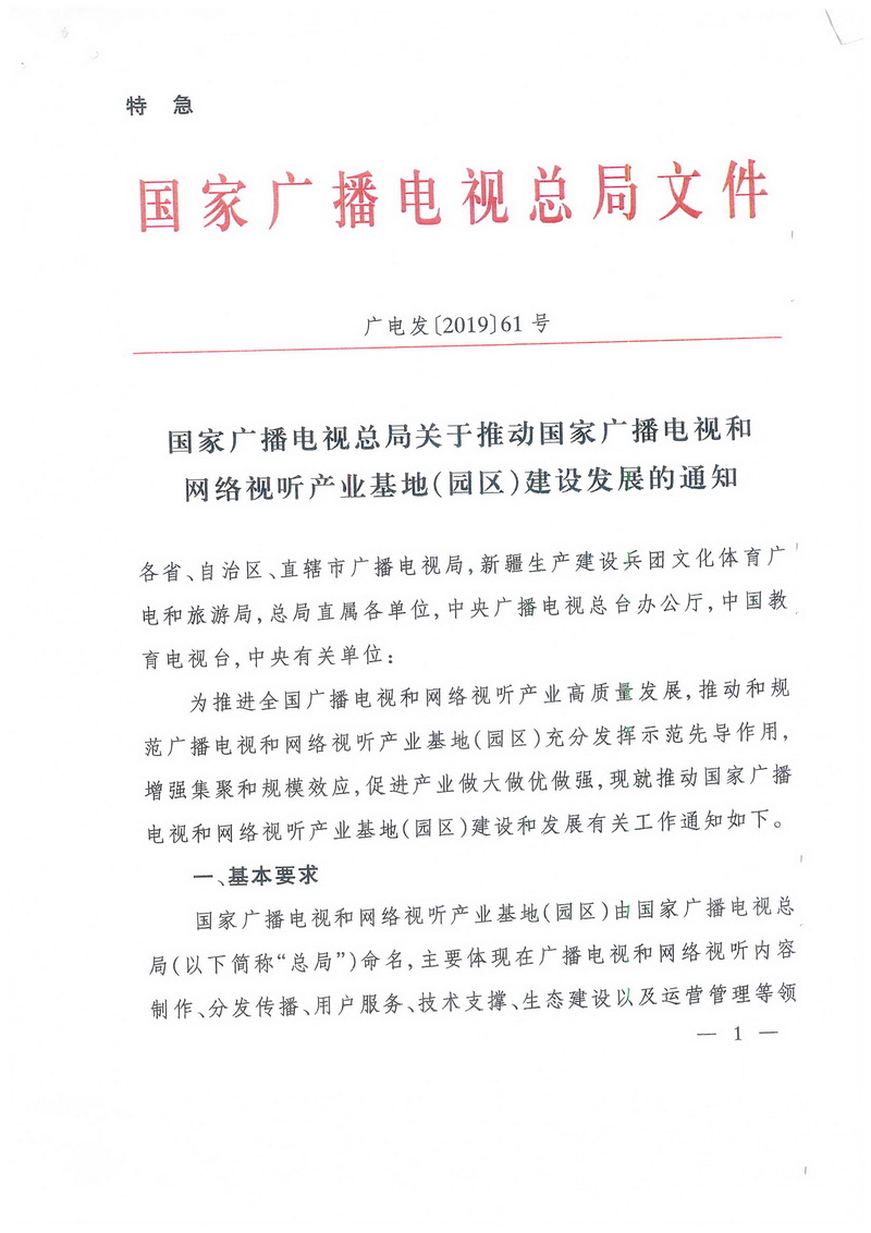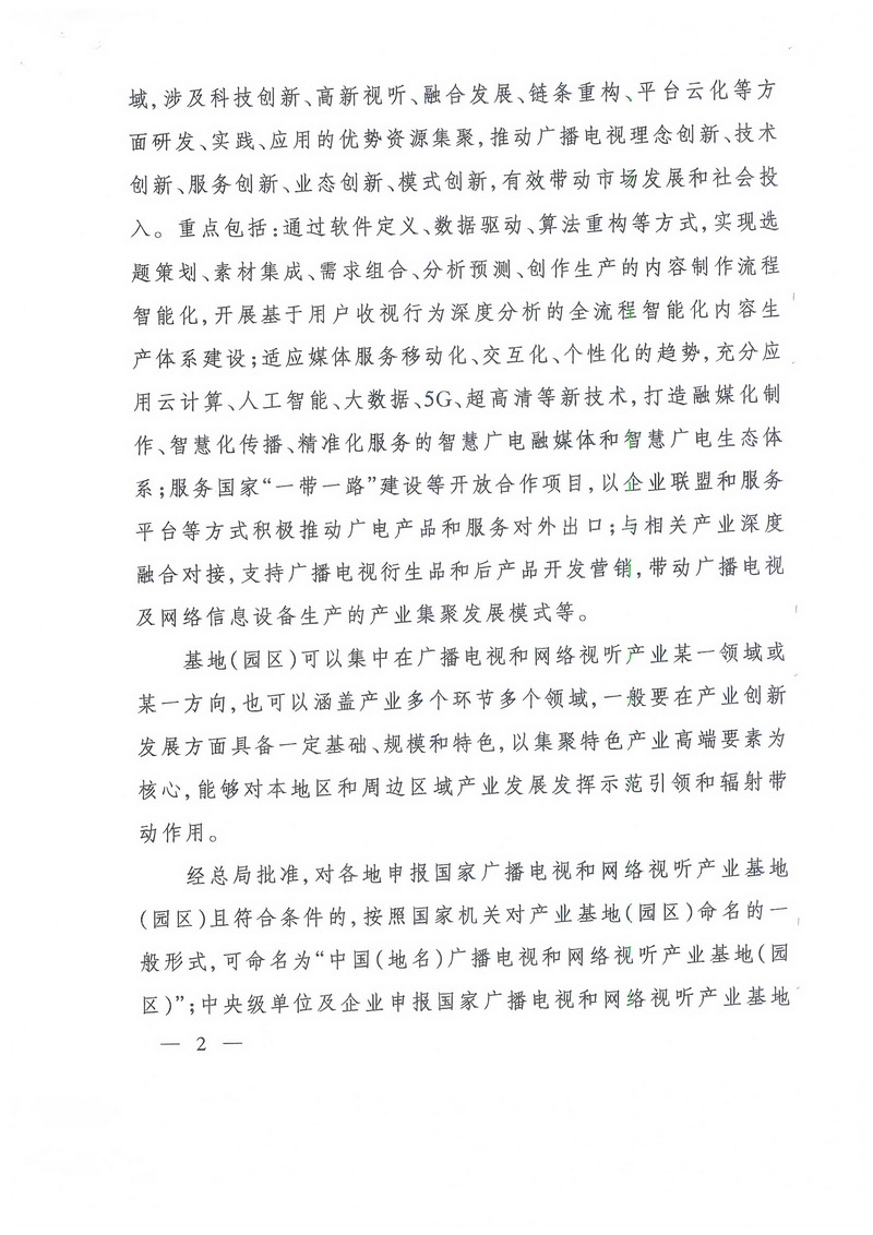 廣電總局發(fā)文推動(dòng)國家廣播電視和網(wǎng)絡(luò )視聽(tīng)產(chǎn)業(yè)基地(園區)建設發(fā)展