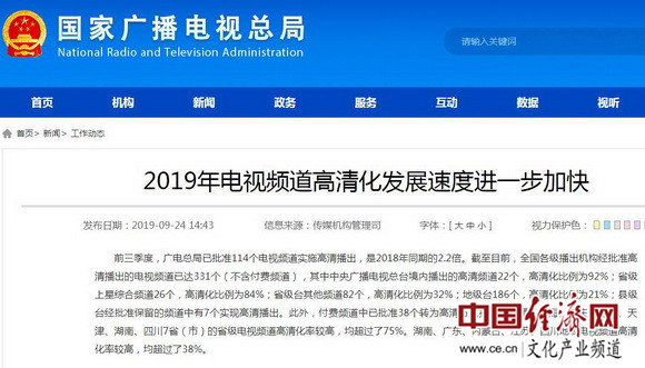 獲批高清播出電視頻道已達331個(gè) 高清化發(fā)展加快