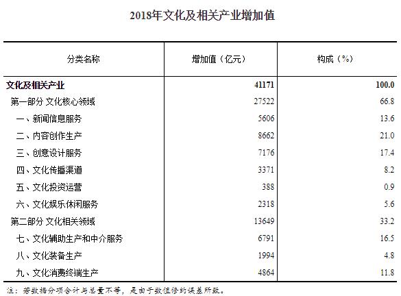文化及相關(guān)產(chǎn)業(yè)增加值的核算范圍包括《文化及相關(guān)產(chǎn)業(yè)分類(lèi)(2018)》中規定的全部文化及相關(guān)活動(dòng)。