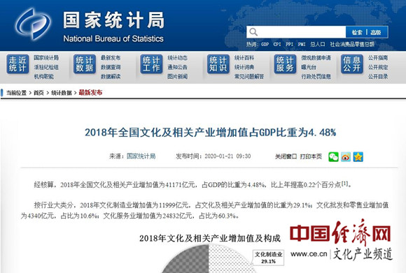 2018年全國文化及相關(guān)產(chǎn)業(yè)增加值占GDP比重為4.48%