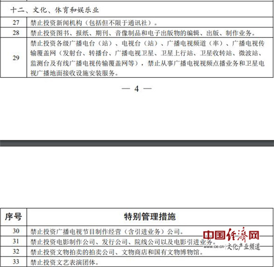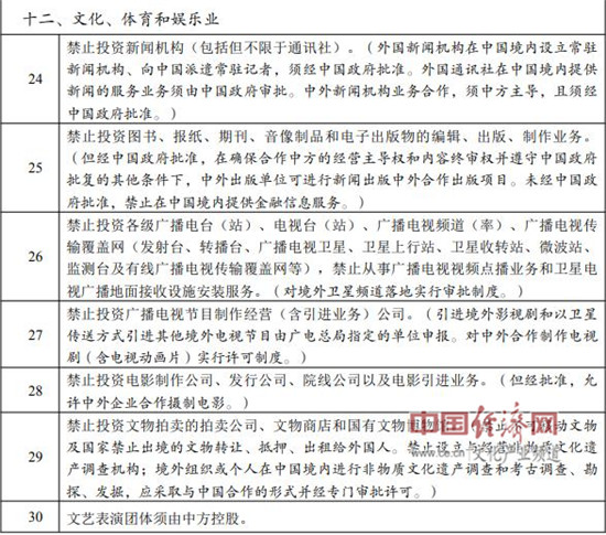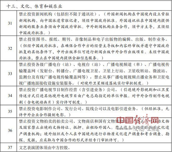 2019年版外商投資準入負面清單文體娛相關(guān)內容