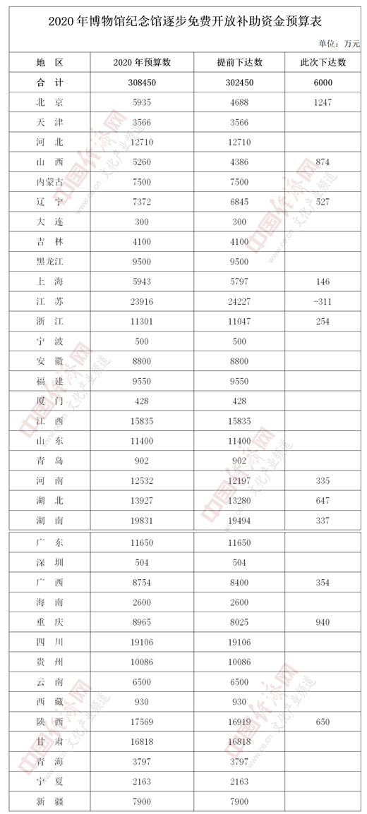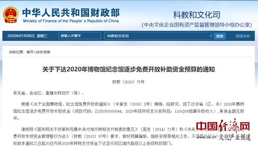 經(jīng)濟日報-中國經(jīng)濟網(wǎng)北京7月8日訊 7日,國家財政部官網(wǎng)發(fā)布《關(guān)于下達2020年博物館紀念館逐步免費開(kāi)放補助資金預算的通知》(以下簡(jiǎn)稱(chēng)《通知》),《2020年博物館紀念館逐步免費開(kāi)放補助資金預算表》同日公布。