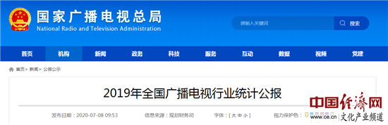 2019年全國廣播電視行業(yè)統計公報