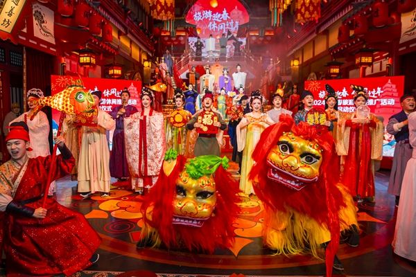 1月24日,由文化和旅游部資源開(kāi)發(fā)司、文化和旅游部新聞中心、陜西省文化和旅游廳、西安市人民政府主辦的“旅游迎春 休閑過(guò)年”——2024年新春旅游休閑宣傳推廣活動(dòng)線(xiàn)下啟動(dòng)儀式在西安市長(cháng)安十二時(shí)辰主題街區舉辦?;顒?dòng)旨在加強以春節為代表的中華優(yōu)秀傳統文化宣傳闡釋和傳承弘揚,豐富人民群眾文化生活,營(yíng)造喜慶熱烈節日氛圍,讓旅游迎春、休閑過(guò)年成為一種新民俗,同時(shí),進(jìn)一步推動(dòng)文化和旅游市場(chǎng)繁榮發(fā)展、豐富旅游產(chǎn)品供給、拉動(dòng)內需擴大消費。