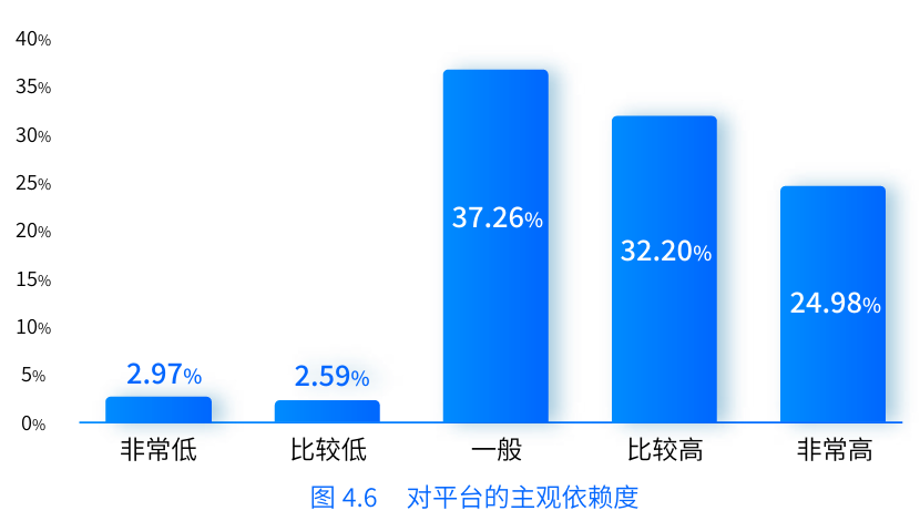 “我們在調研中發(fā)現,貨車(chē)司機對使用數字貨運平臺的主觀(guān)依賴(lài)度還是很高的?!敝袊嗣翊髮W(xué)中國就業(yè)與民生研究院執行副院長(cháng)周廣肅說(shuō)。報告中指出,主觀(guān)認為自己對平臺的依賴(lài)程度較高和非常高的司機占全體調查司機的57.18 %,超過(guò)了總數的一半。