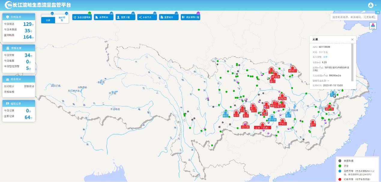 開(kāi)展斷面生態(tài)流量實(shí)時(shí)監測、預報預警和響應處置,圖為系統截圖。(圖片來(lái)源:水利部)