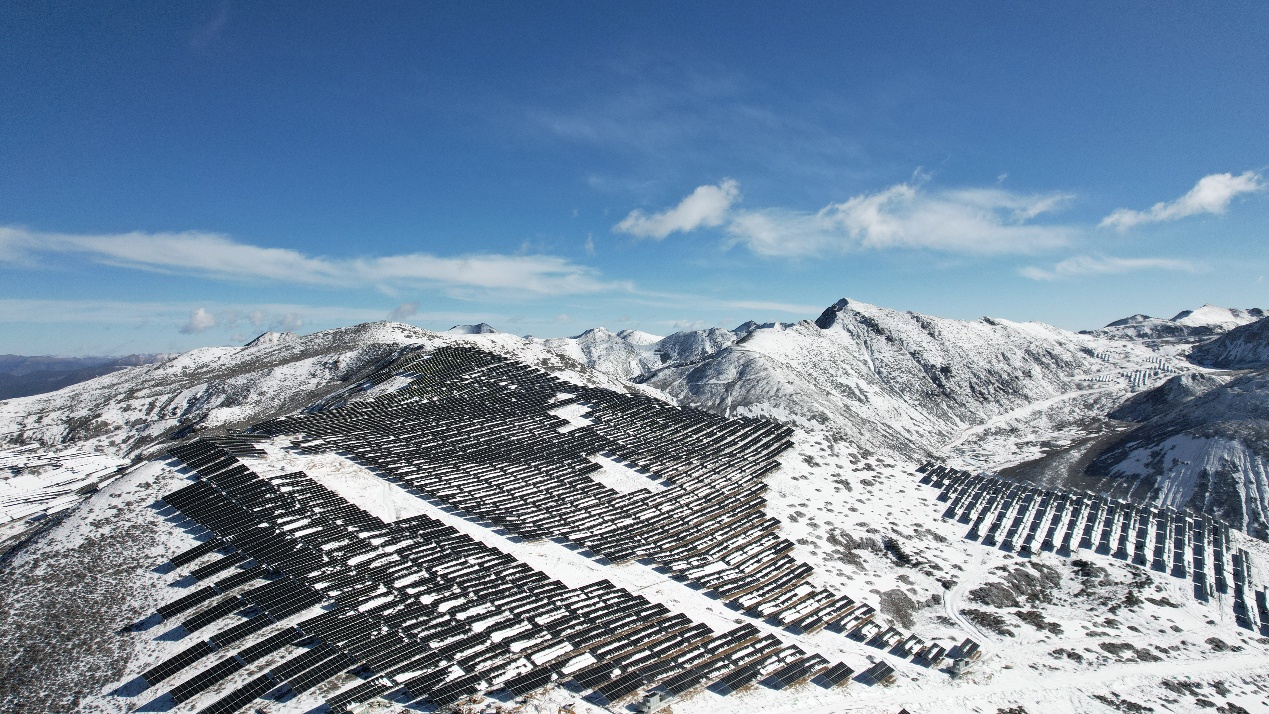圖為與白雪交相輝映的茶布朗光伏電站項目。張海龍攝