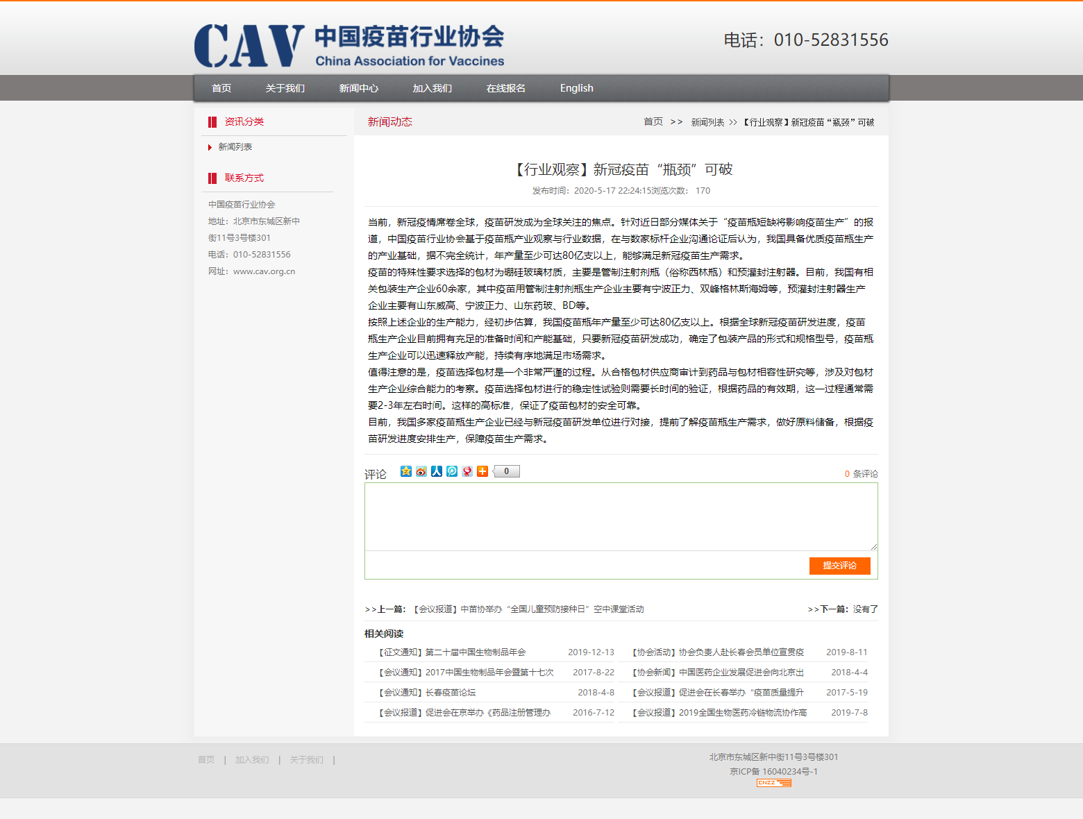 目前,我國多家疫苗瓶生產(chǎn)企業(yè)已經(jīng)與新冠疫苗研發(fā)單位進(jìn)行對接,提前了解疫苗瓶生產(chǎn)需求,做好原料儲備,根據疫苗研發(fā)進(jìn)度安排生產(chǎn),保障疫苗生產(chǎn)需求。(來(lái)源:中國疫苗行業(yè)協(xié)會(huì ))