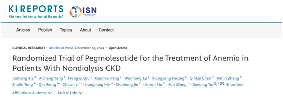 近日,國際腎臟病領(lǐng)域著(zhù)名期刊Kidney International Reports(IF:5.7/Q1)在線(xiàn)發(fā)表了由廣東省人民醫院余學(xué)清教授牽頭的培莫沙肽注射液(商品名:圣羅萊)在非透析腎性貧血患者中開(kāi)展的Ⅲ期臨床研究數據。