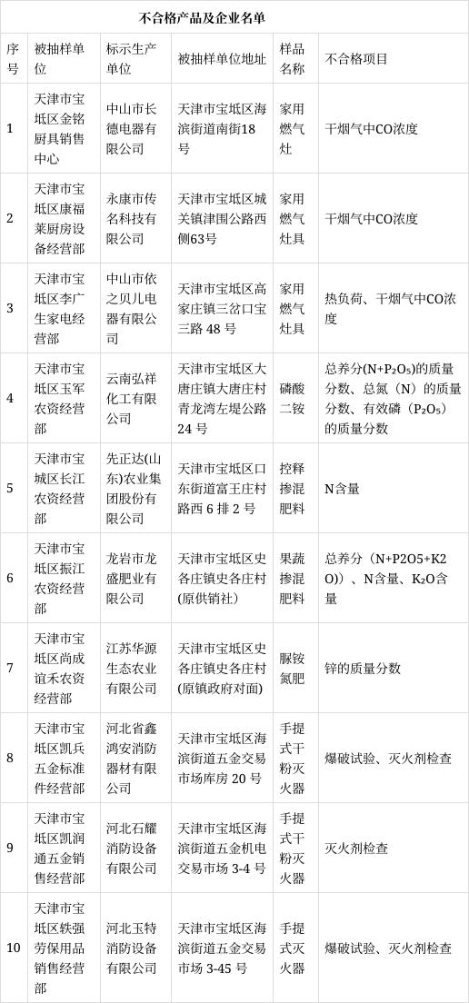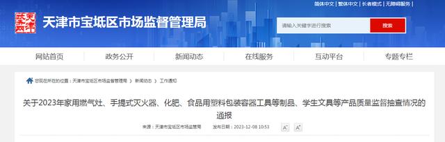 2023年,寶坻區市場(chǎng)監管局開(kāi)展了家用燃氣灶、手提式滅火器、化肥、食品用塑料包裝容器工具等制品、學(xué)生文具等產(chǎn)品質(zhì)量監督抽查。共抽查產(chǎn)品100批次,不合格10批次,不合格發(fā)現率10%。
