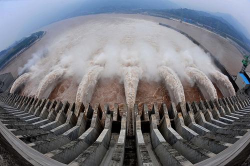 2008年8月13日,長(cháng)江入汛以來(lái)的最大一次洪水順利通過(guò)三峽工程向中下游推進(jìn),中下游水位持續上漲,三峽工程運行正常。2009年汛期,三峽水庫的防洪庫容已達146億立方米,開(kāi)始發(fā)揮攔洪調峰和枯水期給下游補水的功能,下游荊江河段防洪標準已從十年一遇提高到了近百年一遇,長(cháng)江中下游的防洪體系初步形成。新華社記者杜華舉攝