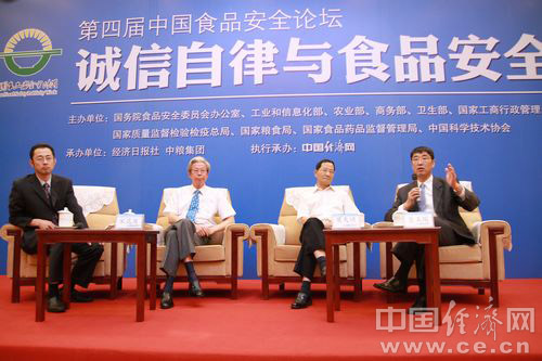 6月11日至17日被確定為今年的全國食品安全宣傳周。宣傳周主題為“共建誠信家園 同鑄食品安全”。全國食品安全宣傳周啟動(dòng)儀式由國務(wù)院食品安全委員會(huì )辦公室、工業(yè)和信息化部、農業(yè)部、商務(wù)部、衛生部、國家工商總局、國家質(zhì)檢總局、國家糧食局、國家食品藥品監管局、中國科協(xié)共同主辦,經(jīng)濟日報社、中糧集團承辦,中國經(jīng)濟網(wǎng)執行承辦。圖為對話(huà)環(huán)節 李凡攝