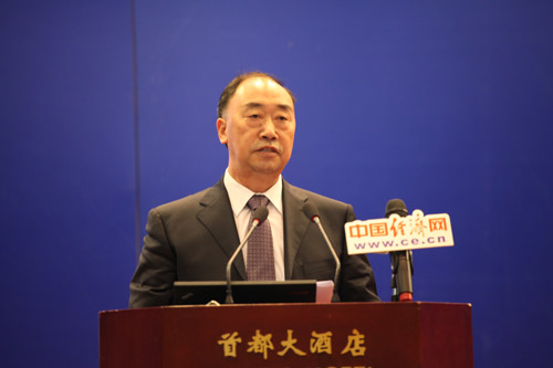 由中國道路交通安全協(xié)會(huì )、中國汽車(chē)技術(shù)研究中心和中國經(jīng)濟網(wǎng)共同主辦的“2013中國道路交通安全論壇”于8月29日在北京首都大酒店舉行。圖為經(jīng)濟日報社社長(cháng)徐如俊致辭。中國經(jīng)濟網(wǎng) 裴小閣 攝影