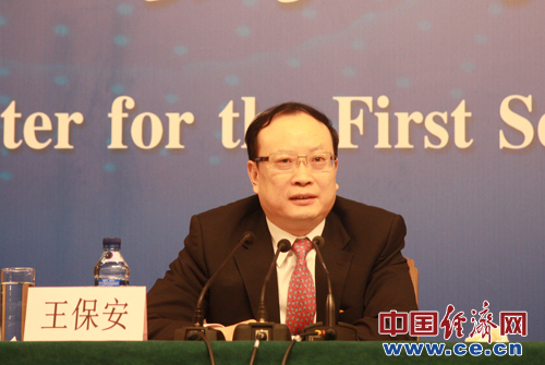 十二屆全國人大一次會(huì )議新聞中心3月14日(星期四)下午3時(shí)在梅地亞中心多功能廳舉行主題為“醫藥衛生體制改革”的記者會(huì )。圖為財政部副部長(cháng)、國務(wù)院深化醫藥衛生體制改革領(lǐng)導小組辦公室副主任王保安。中國經(jīng)濟網(wǎng) 秦宇雯 攝影