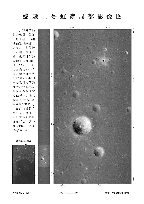 北京,2010年11月8日 國家國防科技工業(yè)局首次發(fā)布嫦娥二號月面虹灣局部影像圖 這是嫦娥二號虹灣局部影像圖(成像時(shí)間為10月28日)。