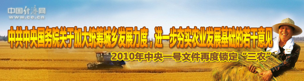 2010年中央一號文件以“加大統籌城鄉發(fā)展力度、進(jìn)一步夯實(shí)農業(yè)農村發(fā)展基礎”為主題,充分體現了中央關(guān)于加強“三農”工作的一貫要求,指明了鞏固和發(fā)展農業(yè)農村經(jīng)濟好形勢的根本方向。